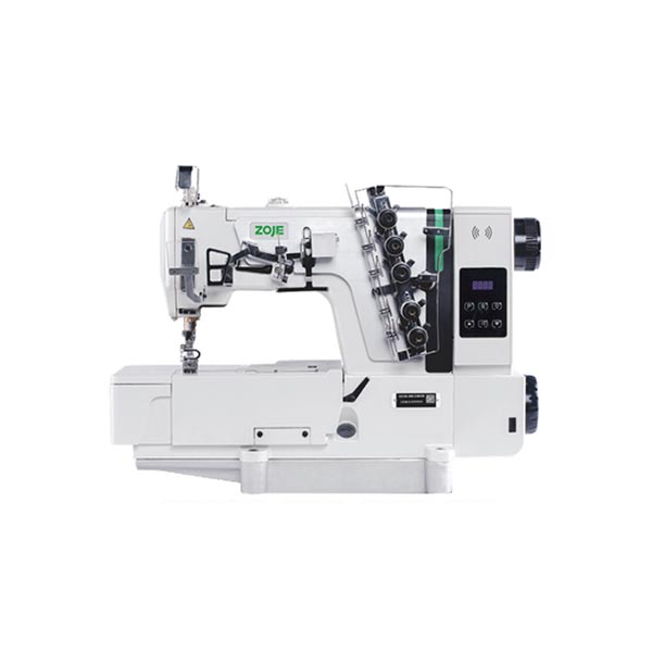 La ZOJE C5000-356-02 es una máquina recubridora de 3 agujas con recubrimiento superior e inferior. Motor servo en el cabezal, con una velocidad de 6000 ppm, posicionador de aguja y luz de LEDs. Galgas a escoger entre 6.4 mm o 5.6 mm